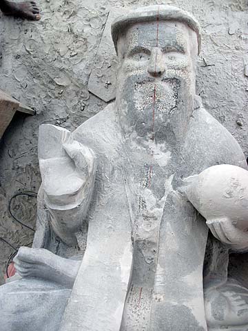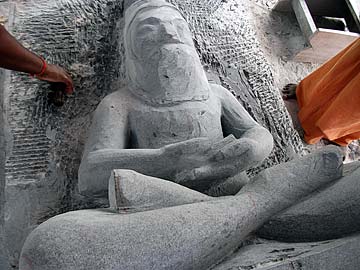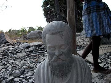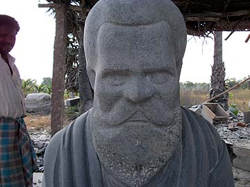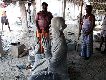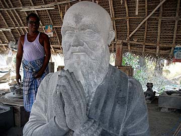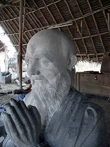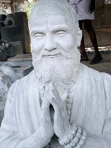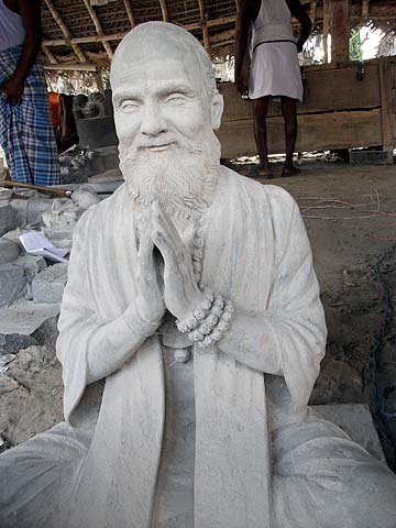 Moving through Mahabalipuram is an adventure. Carvings and works in progress are everywhere!. Here is a sculpture of the famed saint, Shirdi Sai Baba.