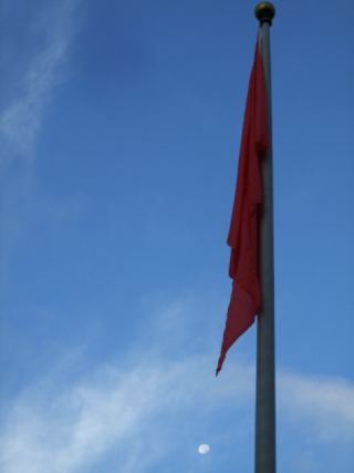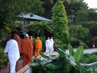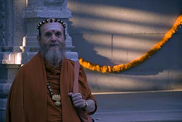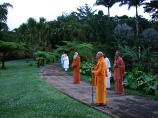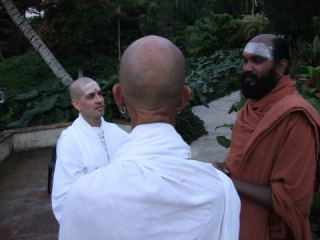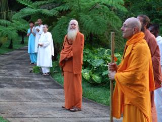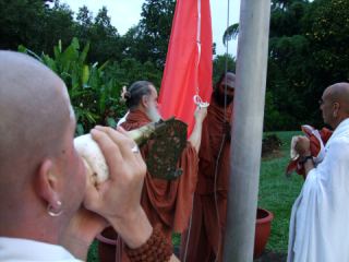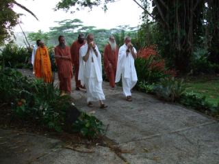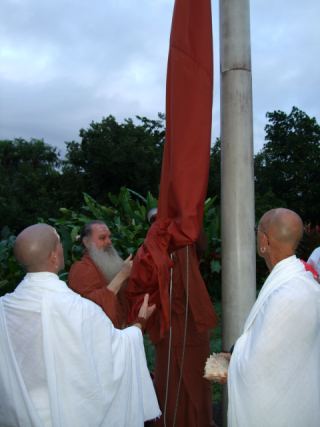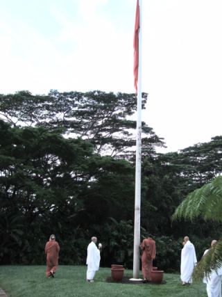Today was the end of our three-times-a-year Sadhu Paksha retreat, and after the morning meditation we paraded out to the flagpole, with conches blowing the entire way.