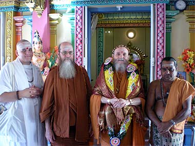 His Holiness Satguru Bodhinatha Veylanswami continues His visit in Mauritius. This morning Bodhinatha visited the Goodlands Siva Soopramaniar Temple on his way to the Spiritual Park. It was a very short courtesy visit.