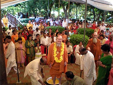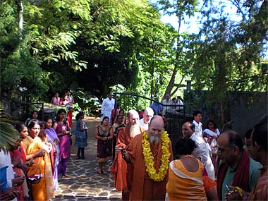 From Goodlands, Bodhinatha drove to the Spiritual Park of Mauritius. A large crowd was already waiting there to welcome the Guru at the main entrance.