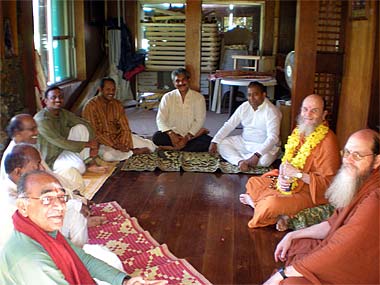 Soon after arriving at the Park, Satguru Bodhinatha Veylanswami met the Kulapatis, the elders responsible for the management and good maintenance of the Park. They had a meeting regarding the affairs of the park Meanwhile Acharya Arumugaswami and Sadhaka Nandinatha, went around for a visit of the premises.