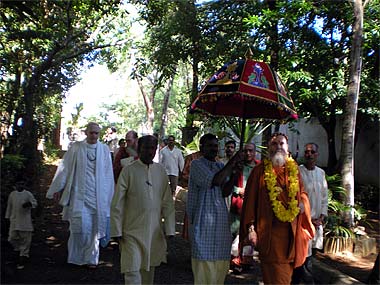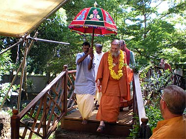 After the meeting with the kulapatis, Bodhinatha came down the gravel path towards the Ganesha Mandapam.