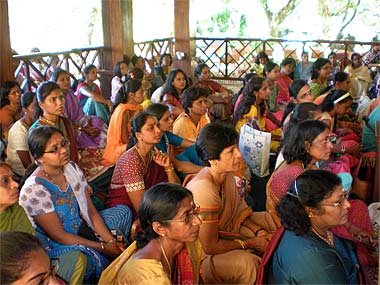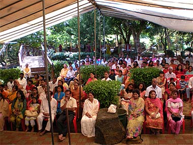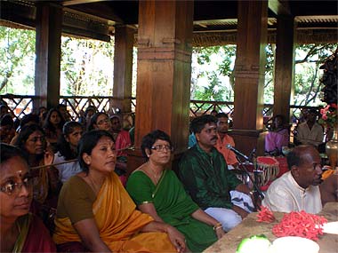 Devotees listened carefully to what Bodhinatha was saying about how the individual can be really happy in his life.