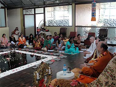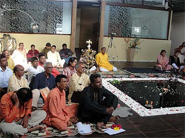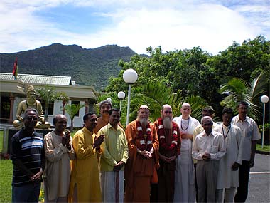 Bodhinatha is now on his way to Delhi having completed the mission in Mauritius. Highlights of events in Mauritius will be coming through photos in the days ahead. This trip was a great step forward for many of the sishya received initiations taking them deeper on the path of Saiva Neri. Bodhinatha's meeting with students and the all day seminar at the Vivekananda Center also nurtured a large group along the path. The monks at Kauai Aadheenam want to thank all the members in Mauritius for their hard work and 150% dedication to make the trip such a success! Now: a report from there on some of the events.