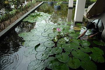 Later we ventured to the Singapore's world-famous national botanical gardens. Here we see an employee tending to water lillies.