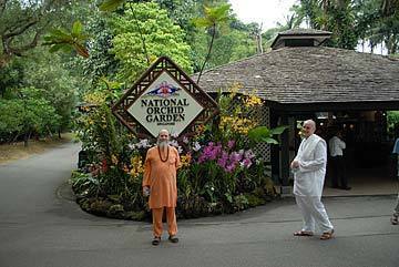 This part of morning was particularly enjoyed by Bodhinatha - the National Orchid Garden which resides within the botanical garden. Here he is with Sadhaka Nandinatha.