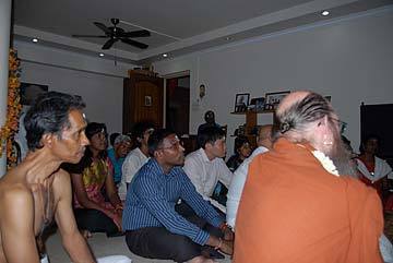 Following the pada puja, and with interest, our attendees listen to Bodhinatha's upadesa.