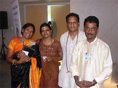 Two participants, the Moodley couple (in the middle), made it all way from South Africa to attend the seminar in Mauritius. They wanted a souvenir photo with Rajen and Premila before leaving for the airport.