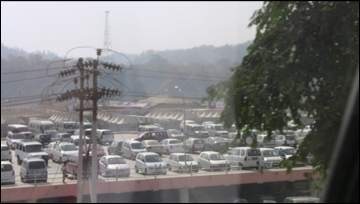 Today was a day of transit, so there's not too much to report. We drove from Haridwar to Dehradun where we then took a Kingfisher Ariline flight back to Delhi. On the way to the airport, one could see hundreds upon hunreds of vehicles on either side of the main road. In the distance, you can see large tents and perhaps you might even be able to make out the wooden-post queue especially designed to more efficiently handle lakhs of pilgrims.