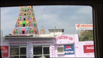 We spotted this colorful South Indian-style rajagopuram just past the seated Shiva on the other side of the road.