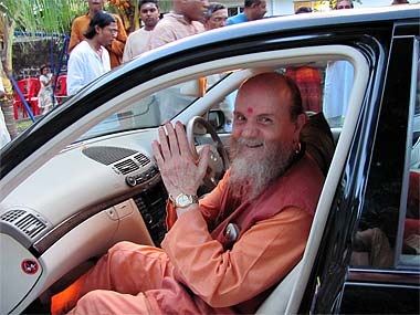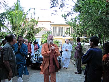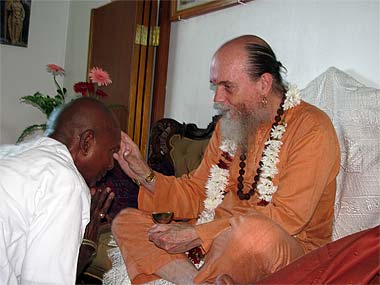 Brahmachari Vel Receiving the holy ash from the Guru.