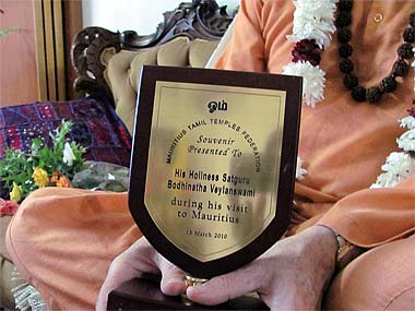 A souvenir shield was presented to Bodhinatha by the Mauritius Tamil Temples Federation.