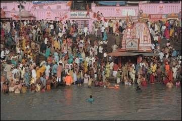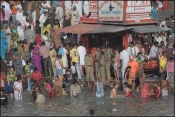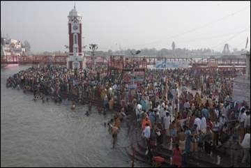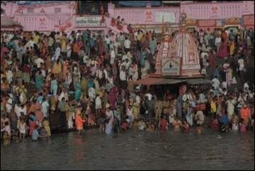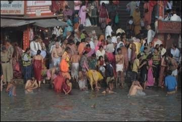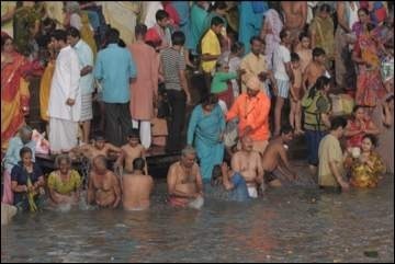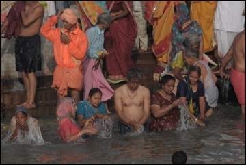 Bodhinatha in Haridwar, Bathing in the Ganges