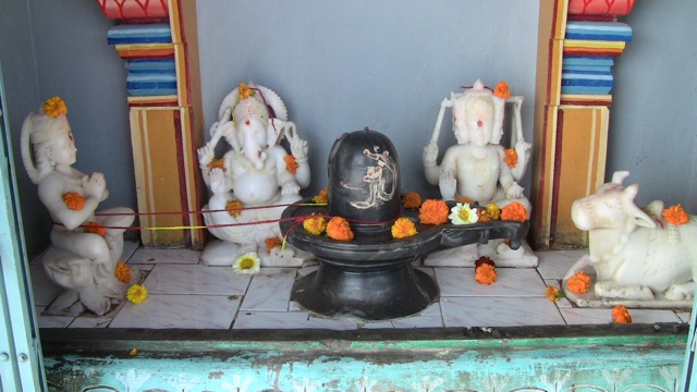 It's Sivalingam in the centre, flanked by Ganapati and Shanmugam, with Amman and Nandi on respective sides. Perhaps this is not phenomenal, but I was surprised to see this shrine set-up all the way up here in Uttarakhand - including Shanmugam. You always only see Ganapati included with Siva-Parvathi.