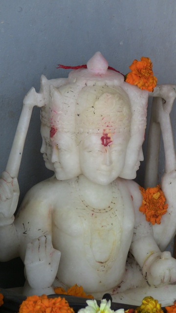 A small shrine exists on the steps of a ghat in front of Ganga near Omkarananda Ashram's bathing spot in Rishikesh. The shrine is not connected to the ashram, however, it just happens to be there.