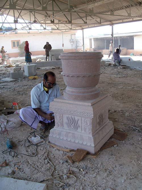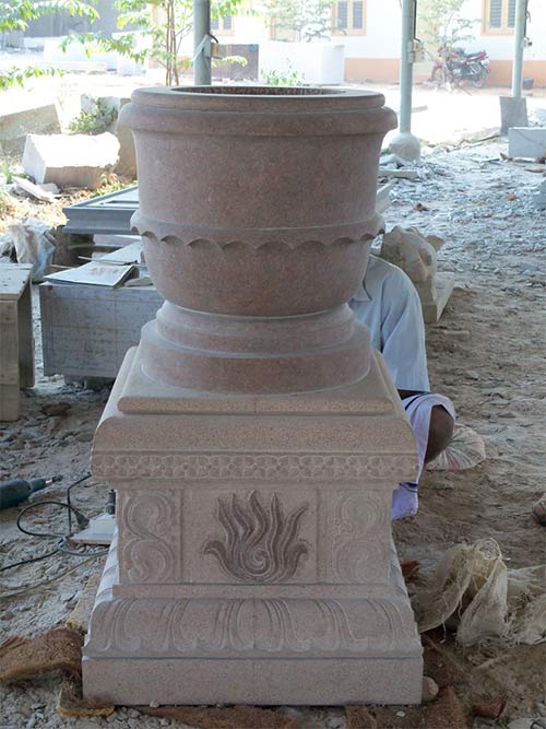 Work in India continues, not only on stones for Iraivan by a few other projects as well. Those who are familiar with the entrance to Kauai Aadheenam from the Kaholalele Road side know that we have a Vasana Daha Tantra burning urn at the Puakenekene Mandapam. We are approaching the installation of a granite archway soon and to go along with this is a new all granite urn for burning up things in the subconscious.