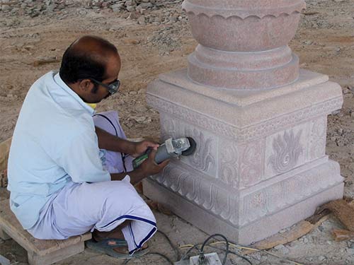 Stones that are not being used for Iraivan temple may be carved with modern tools. Here we are polishing with an electric grinder.