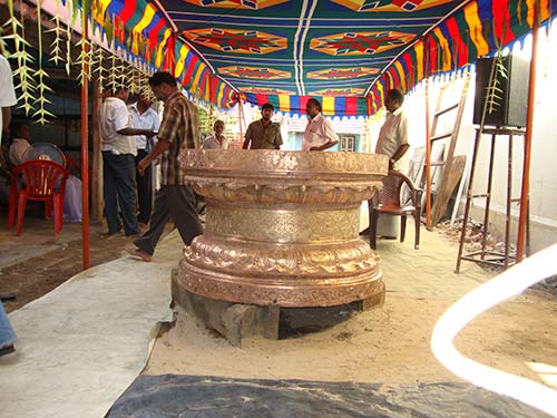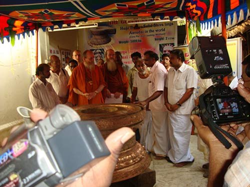 Selvanathan Stapathi who designed the Avudaiyar and Kubera Stapathi who manifested it with his team of metal craftsmen hail this piece as something unique in the history of temple sculpture in recent times.