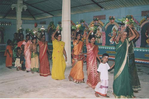 After the puja, devotees carried paal kudam (milk pots) with the sacred bilva leaves in a procession lead by a Naathaswaram and Thavil musical ensemble to the Sri Shanti Lingam temple.