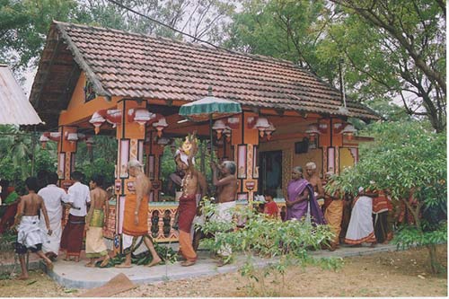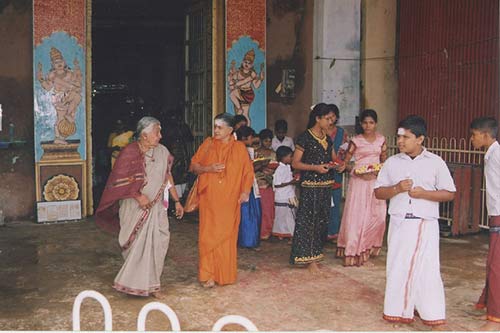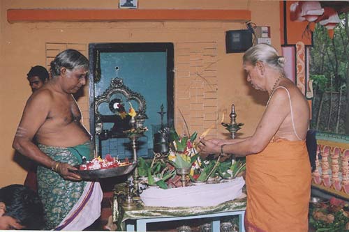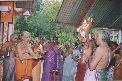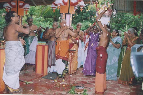 The devotees' paal kudams were used for the abhishekam of Sri Shanti Lingam which Gurudeva had installed. The Sivachariyas have performed a Rudra Homam and Sangabishekam to Sri Shanthi Lingam. The ceremonies ended at 2:30 pm. After that the lunch (Anna Dhanam) was served to all the devotees. Then pujas resumed again in the evening, all through the night until early next morning.