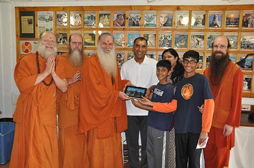 Srinivas ("Sri") and Padma Mandalaparthy who follow TAKA regularly noted the Ganapati's Kulams work on digital publications and decided to make a gift of an iPad to the Aadheenam. Today they joined the Ganapati Kulam to make their presentation. Their two sons were already avid users! A wonderful and timely gift to the team that is working tirelessly to get Gurudeva lifelong legacy online, and the iPad is our next platform to conquer.
