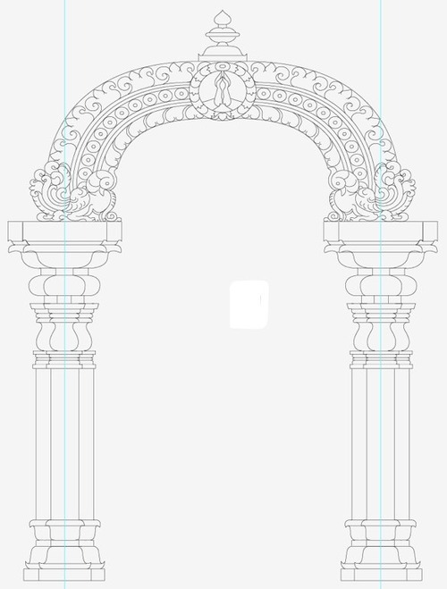 Way back in 2001 Palaniswami and Jiva Rajasankar sketched out some ideas and then handed it over to Selvanathan Sthapati, who drew a granite gate in Chola style.