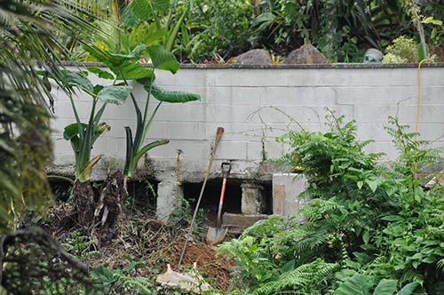 Now is the time to fix serious leaks that have eroded a lot of soil underneath the pond and sidewalk.