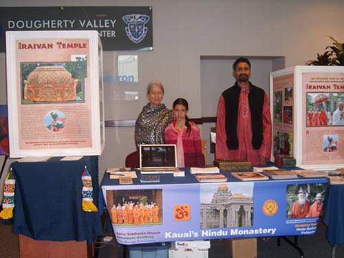 Lata Sri Ram organized a two-day music concert called Pallavika in San Ramon, California. Deva Rajan, Shivani Rajan and Kanda Alahan set up an Iraivan booth in the lobby. These are pictures of some of the volunteers who staffed the booth for the weekend.