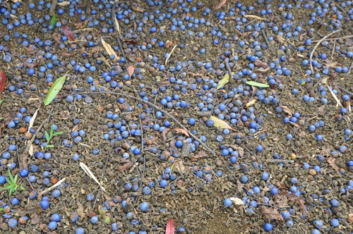May 4, 2010It's Rudraksha harvest time in the forests of the monastery. There are hundreds of thousands of cobalt blue fruits on the ground today.