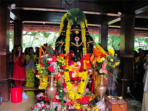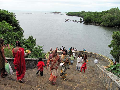 Devotees do not miss to go down the river to collect water that they would ceremoniously pour on the Sivalingam.