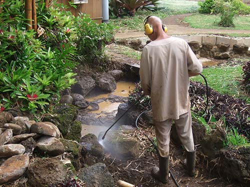 Pressure washing silt away from the banks.