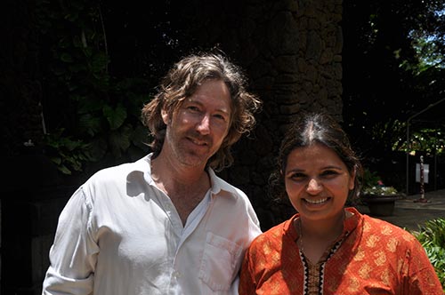 Two world renowned classical Indian musicians came to visit the temple today. They played a Tala Records concert last night at the Kauai Community College. Kala Ramnath (on the right) has revolutionized the technique of playing the violin, bringing it so close to vocal music that she is acclaimed as "The Singing Violin."
