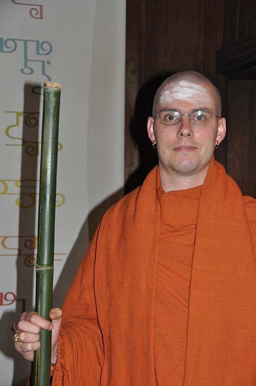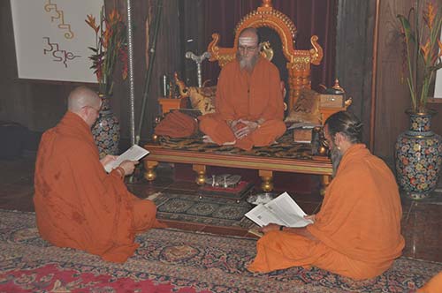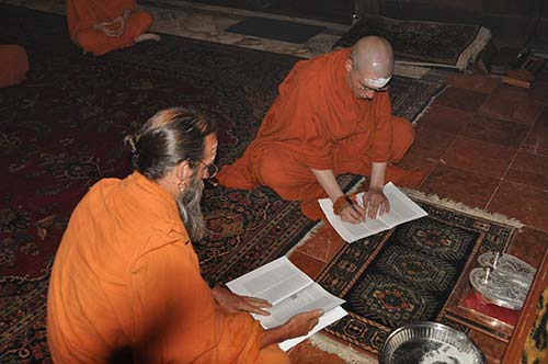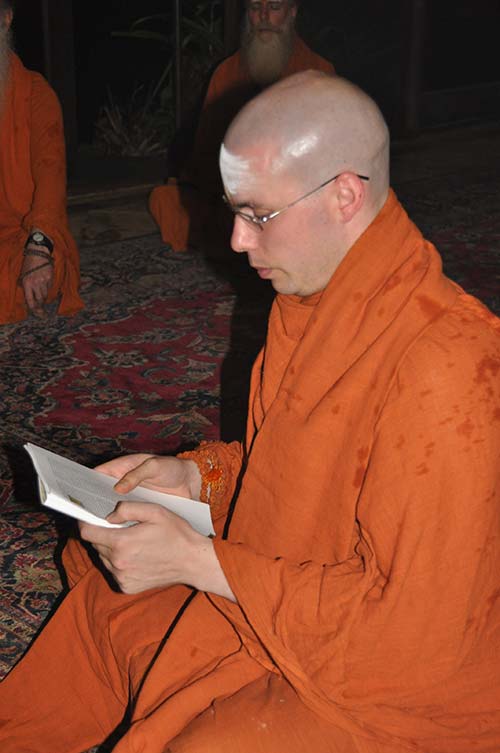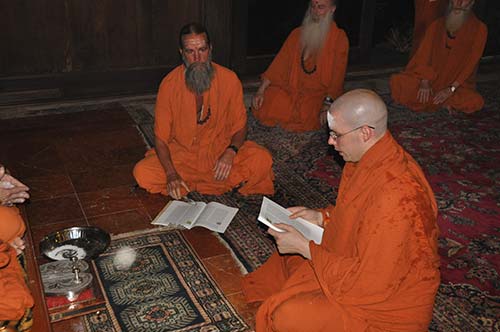 Our new swami reads aloud his vows of renunciation, purity and obedience, humility and confidentiality.