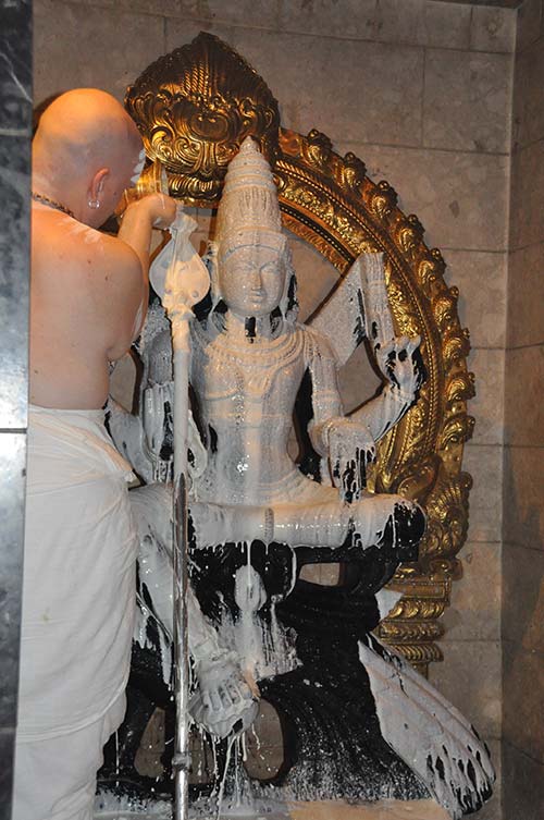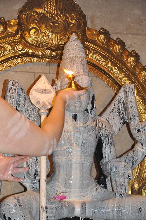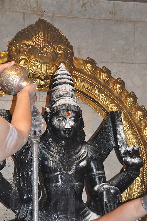 Sadhaka Nandinatha after several years of practice on his chanting and puja was the lead pujari for the puja. This is his first big puja/abhishekam.