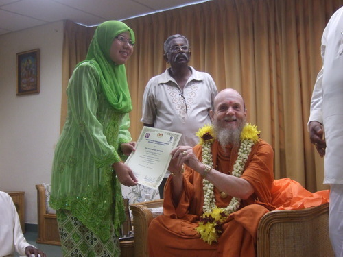 Bodhinatha handed out sewing class certificates to a group of students. The Sangam is active in teaching courses in cooking, sewing and other home arts for the local community. Visit the Malaysia Hindu website at www.hindusangam.org.my.