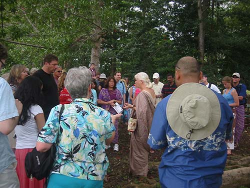 Kulamata Amala speaking to the group about our Rudraksha project and fund raising for Iraivan.
