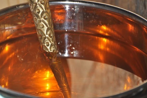 (Ghee buckets for the homa) "If you take responsibility for all that happens to you, then you will have the power to deal with your karma through the grace of Lord Siva. He will give you the intelligence to deal with it as you worship Him in the Siva temple, contact Him within as the Life of your life and find Him in meditation. Let's take an example. Say I am holding a plate of rice and curry and I pass it to you."