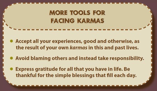 (The prayers disappear on this physical plane, to manifest in the subtle world of the devas.) "Those who do take responsibility for their own karma have all the help in the world. The sages say, "Bear your karma cheerfully." Each time you blame another person for what has happened to you, or cast blame in any way, tell yourself,