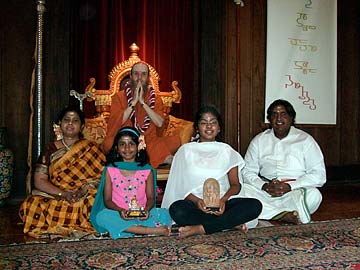 Bodhinatha also had darshan with the Supermaniam Suthaker family from Edmonton, Canada, members of the Mahaganapati Temple there and from Jaffna, Sri Lanka originally. It's their first visit to Kauai, and already planning to come again next summer. The two daughters Nila and Roja attend our sishya Aran Veylan's Saiva Dharma class in Edmonton. They received Ganesha murthis as gifts from Bodhinatha.