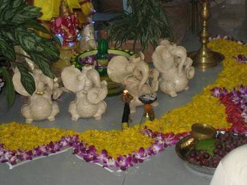 21st Decmeber, 2.00pm in the temple, Magalir team members (women's wing) happily volunteered and are seen preparing to decorate Lord Ganesha.
