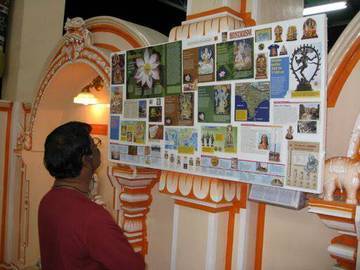We made good use of some pages from Hinduism Today, creating this attractive display. Jai Ganesha! Jai Gurudeva!