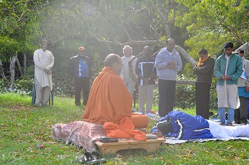 The morning started with Hatha yoga with Acharya Kumarswami.
