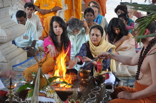After this powerful message, we paraded to Iraivan temple with Satguru and the monks for a very profound experience of a homa inside Iraivan Temple. The energy and vibrations in the temple, with the agni fire, the presence of Satguru and the monks chanting Sri Rudram, were extremely uplifting. Everyone was given the chance to offer grains into the homa with Satguru.