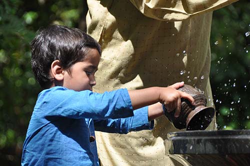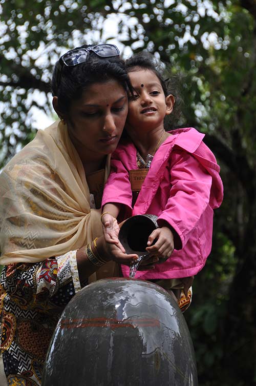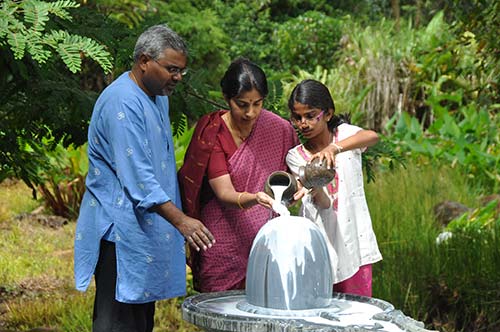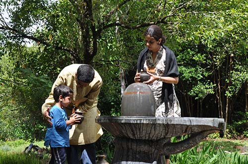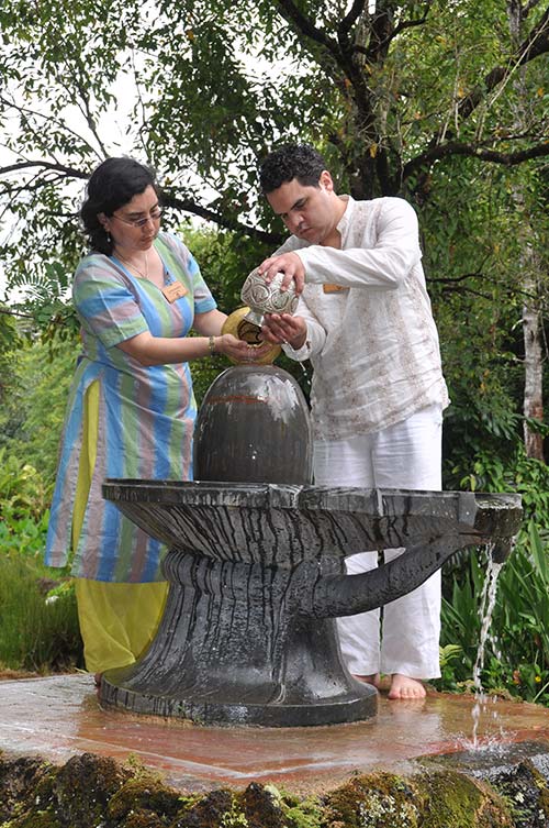 Day Seven comprised to main events. In the morning everyone participated in an abhishekam for the Narmada lingam. Ravi, Sheela and Aarti Rahavendran offer milk.
