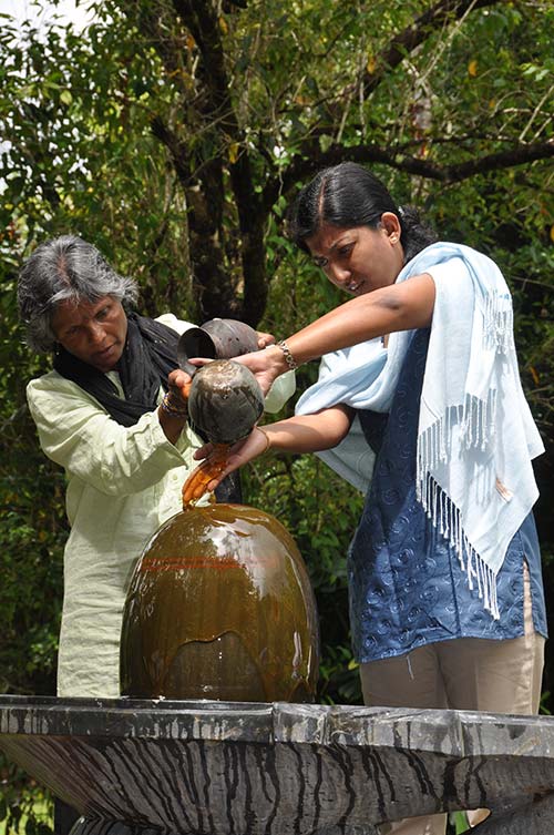 Puvaneswary from the Netherlands and Parimala from Malaysia are doing honey.