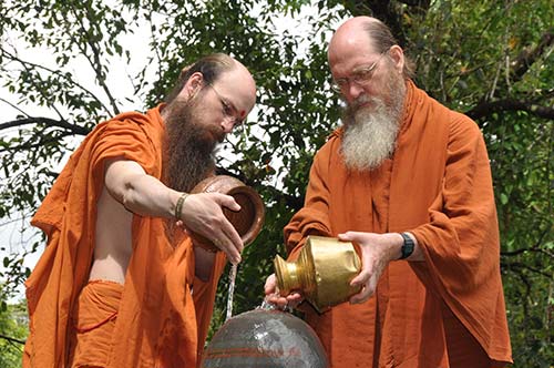 Gunamaya and her brother Alejandro from Mexico offer water as did everyone else. Gunamaya has completed her conversion to Hinduism and taken the name "Gunamaya Sivananda." Alejandro is also very serious about becoming a Hindu and following Gurudeva's teachings and marrying a devotee of Gurudeva.
