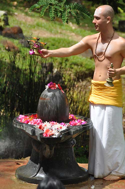 Sadhaka Satyanatha does the final arati. Shankar Mallampalli, Mrunal and Padmaja Patel also chanted Sri Rudram throughout. It was a powerful experience for all and Siva's presence was indeed invoked there on the path of the Saiva Saints.
