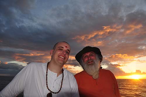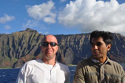 We took a few of our monks who were not on the innersearch staff along with us. Sadhaka Nilakantha with Ashish Chitnis with the incredibly view of the Napali coast in the background.