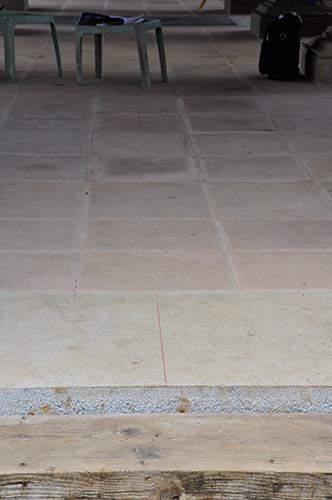 Proceeding inward, the line is marked on 2 by 4 spanners.