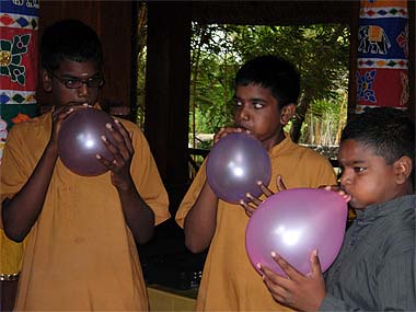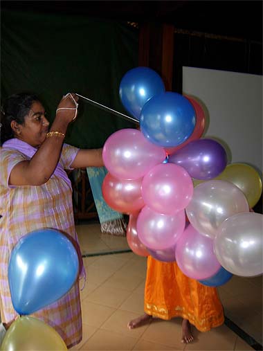 Balloons almost ready to be hung near the murthi of Pancha Ganapati.